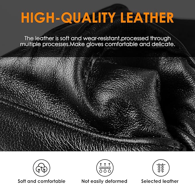- Anti-Slip Design: Winter leather gloves have 3 fine lines design on the palm, effectively increasing the grip and abrasion resistance of the gloves. You can hold the steering wheel firmly or hold your cell phone steadily while driving, perfect for driving, working, biking and other outdoor activities