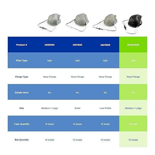 - [LASTS LONGER LESS WASTE] Exclusive BLACK DURA-MESH SHELL protects the filter media, so it stays cleaner-looking longer. The shell also resists collapsing in hot, humid environments, so the respirator holds its shape longer and the result is fewer respirators used and lower costs.