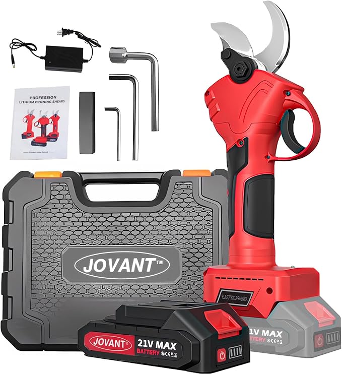 - Adjustable 1.2-inch or 0.8-inch Cordless Pruner: Jovant Cordless Electric Pruning Shears are equipped with 1.2in(30mm) large cutting diameter to handle thick and thin branches with ease -- whether it's 0.8in(20mm) for daily pruning or 1.2in(30mm) for thick and hard branches, you can cut them off accurately with one touch and say goodbye to the inefficiency of sawing over and over again!
