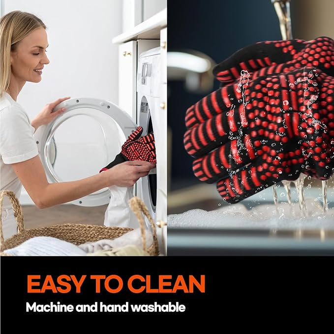- ✅【Easy to Clean】- The grill gloves can be machine-washable and hand-washable. They are super easy to clean, so don't be afraid to get them dirty. Just throw the BBQ grill gloves in the washing machine after you're done grilling.