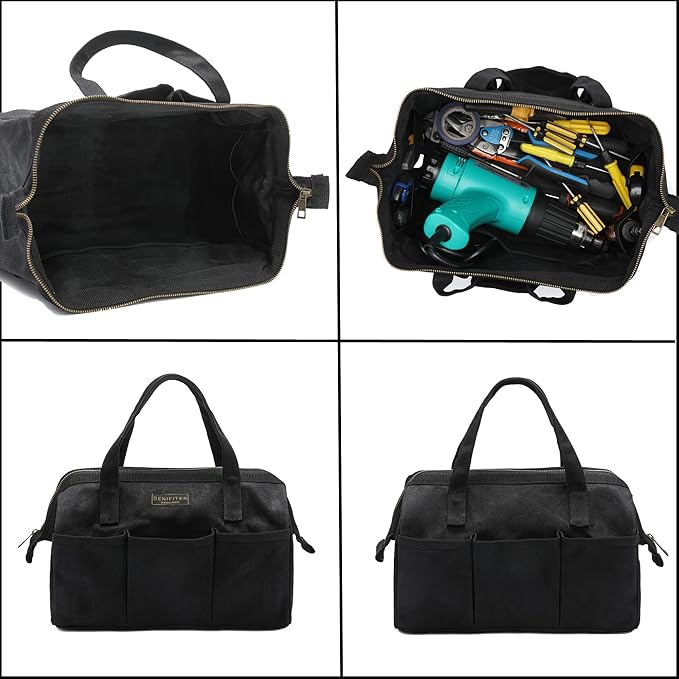 - PRODUCT DESIGN: This tool bag has 6 external pockets and 4 inner pockets, a large main compartment with internal steel reinforcement for maximizing the space on the top. It can help you organize your tools and easily identify them, saving space and time.