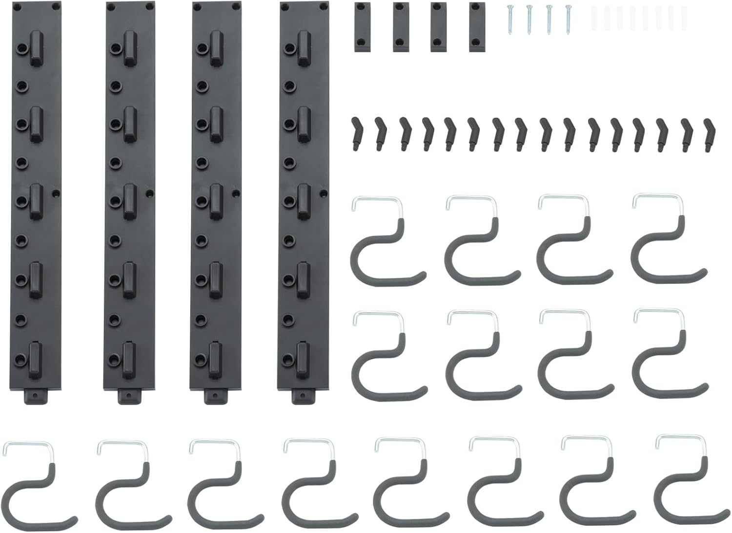- Garage Tool Organizer: The 64 Inch garage wall mounted organizer can provide superb organization for home, garage, store, cellar. Perfect for hanging common tool such as garden tools, shovels rakes, brooms, mops, extension cords, hoses, power tools, and other sporting equipment such as helmets, boots, ice skates, hockey sticks, ski gears etc. A great solution to keep your space tidy and neat!
