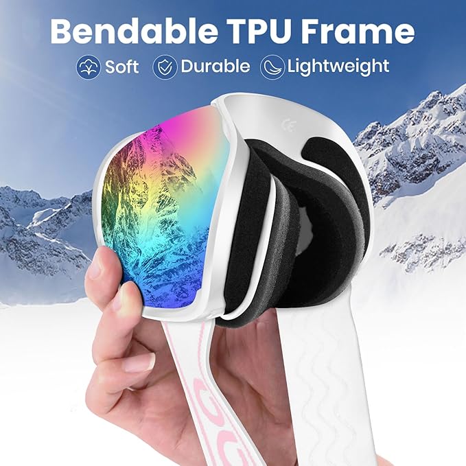 - OTG DESIGN & COMFORTABLE FIT: Our anti fog ski goggles are designed with OTG (Over-The-Glasses) design, allowing both large and small frame glasses wearers to comfortably wear their prescription glasses underneath the goggles. Enjoy clear vision and convenience while skiing without compromising on style.