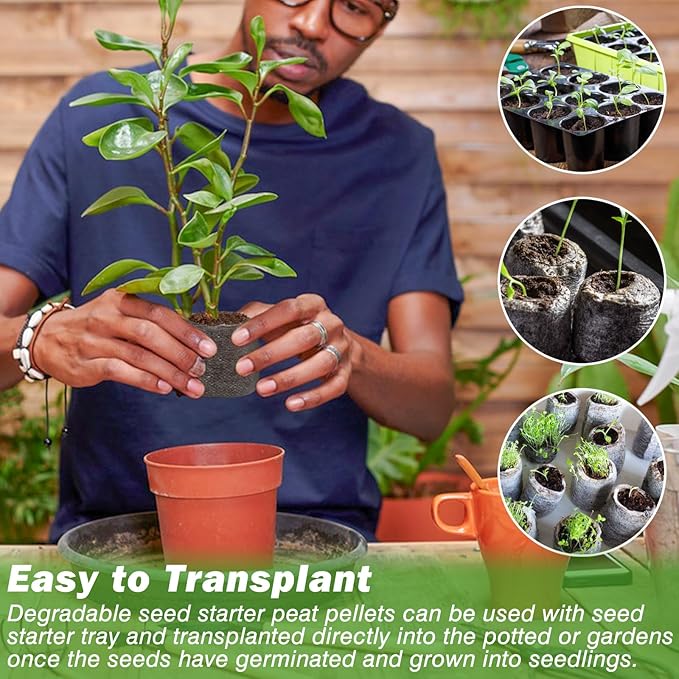 - 【Easy to Use】 First put the seed starting pellets in a tray or container, then add enough warm water, wait until it has completely absorbed the water to expand, cut off the top circle and plant the seed in it, wait for the seed to germinate and grow leaves, then it can be transplanted into a pot or garden.