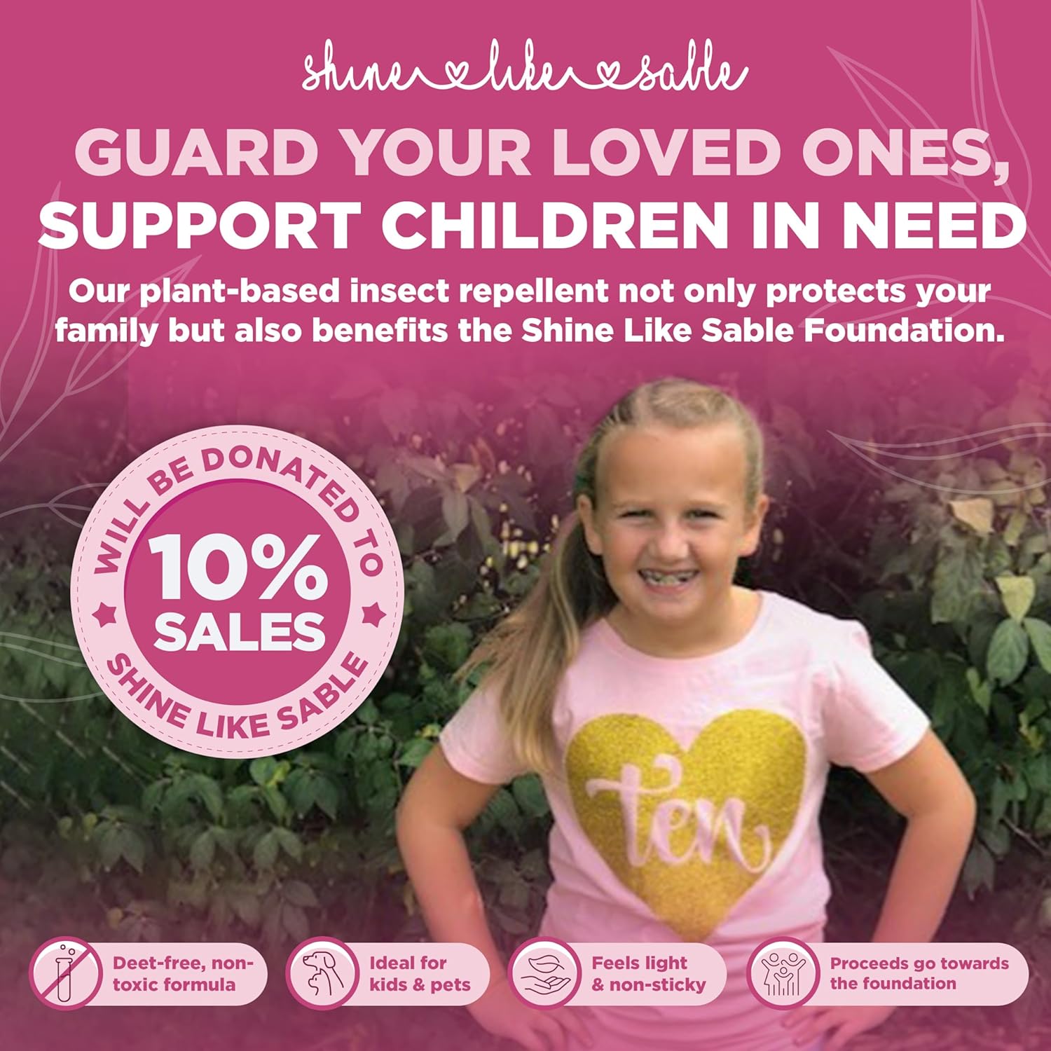 - INSECT SPRAY WITH A CAUSE - A portion of the proceeds from each purchase of our vanilla scent insect repellent will go to Shine Like Sable Foundation - a non-profit organization dedicated to spreading kindness and helping kids in need.