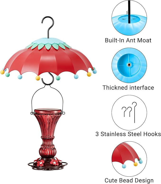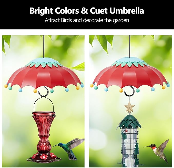 - 【BIRD FEEDER RAIN GUARD】 The three-layer umbrella plastic bird feeder weather guard is like an umbrella for your feeder to provide shade from rain and snow and keep the nectar cool, and like the purple flowers you planted with your own hands to beautify your garden and help the hummingbirds in summer
