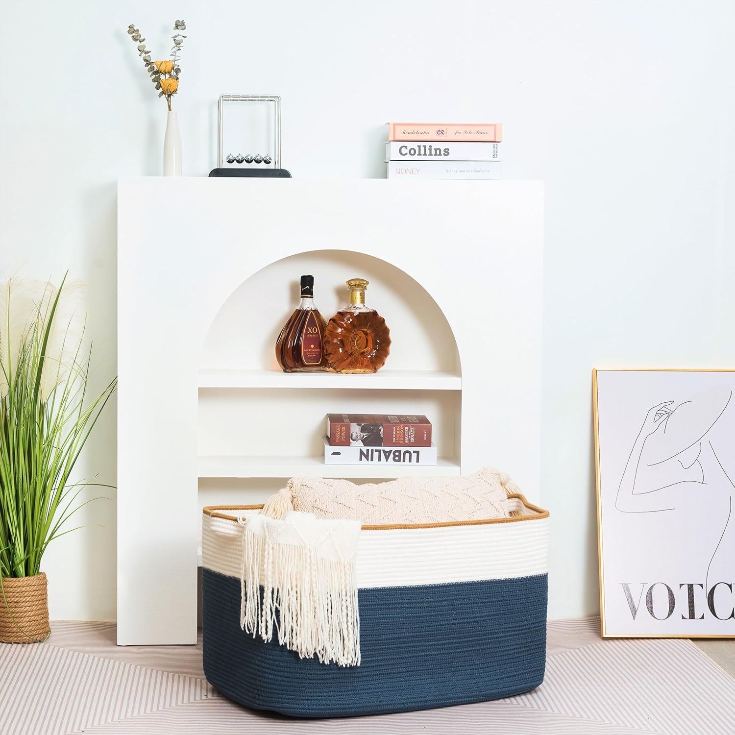 - Decorative Storage Baskets for Home Decor - A stylish, practical alternative to other boring storage solutions. Not only will our large storage baskets help you get organized, their sleek, sophisticated shape and neutral colors will complement any decor and any room: the bathroom, playroom, bedroom, living room, laundry room, mudroom, home office, entryway & more.