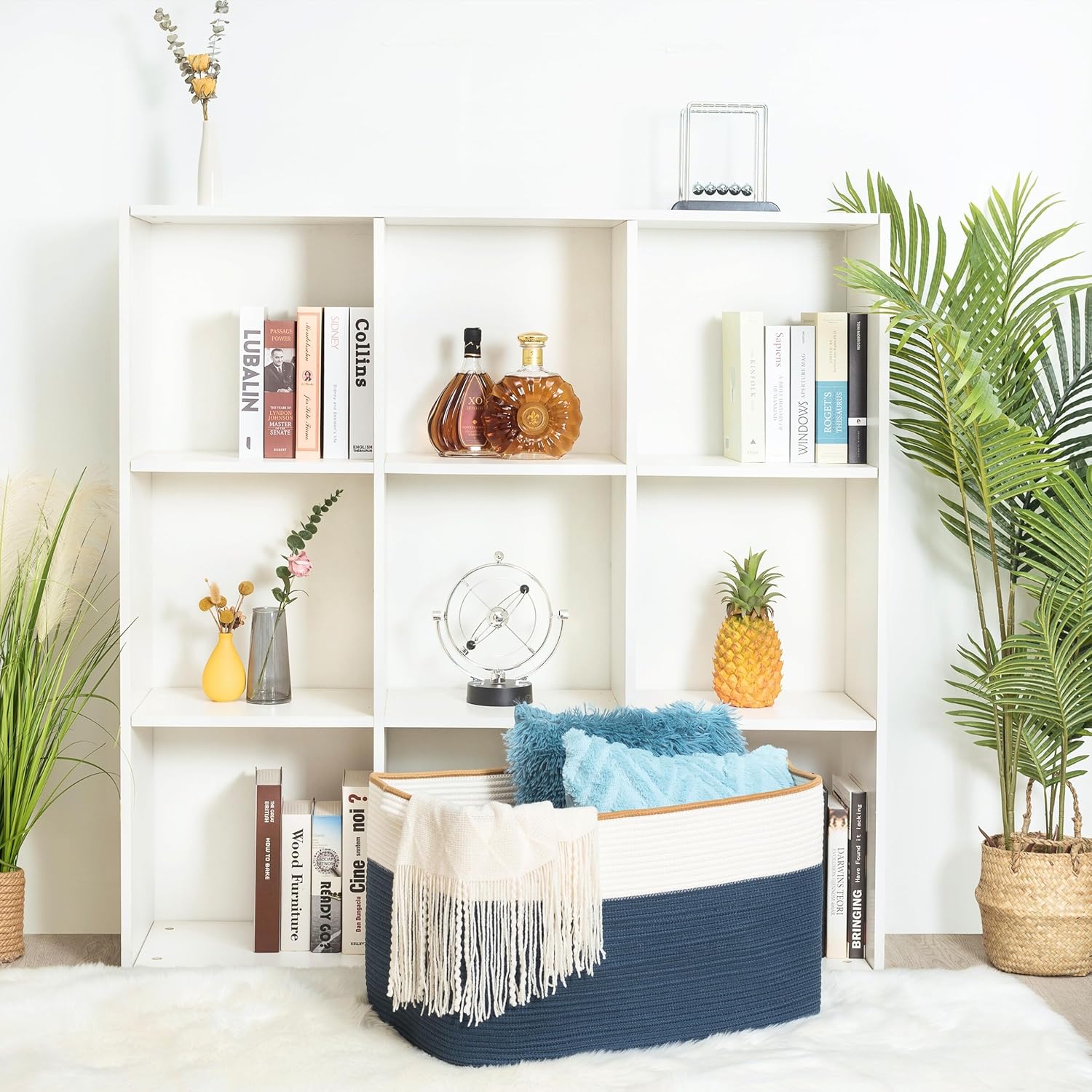 - Extra Large Cotton Rope Storage Baskets - Measured as 22"x17"x12", this large rectangle basket is big enough to store bulky items like extra blankets, pool towel, shoes, comforters, duvets, throw pillows, cushions, and stuffed animals, winter clothing, laundry, and more. It offers plenty of space for smaller miscellaneous items too, like books, magazines, and dog toys, to keep your living space neat and tidy!