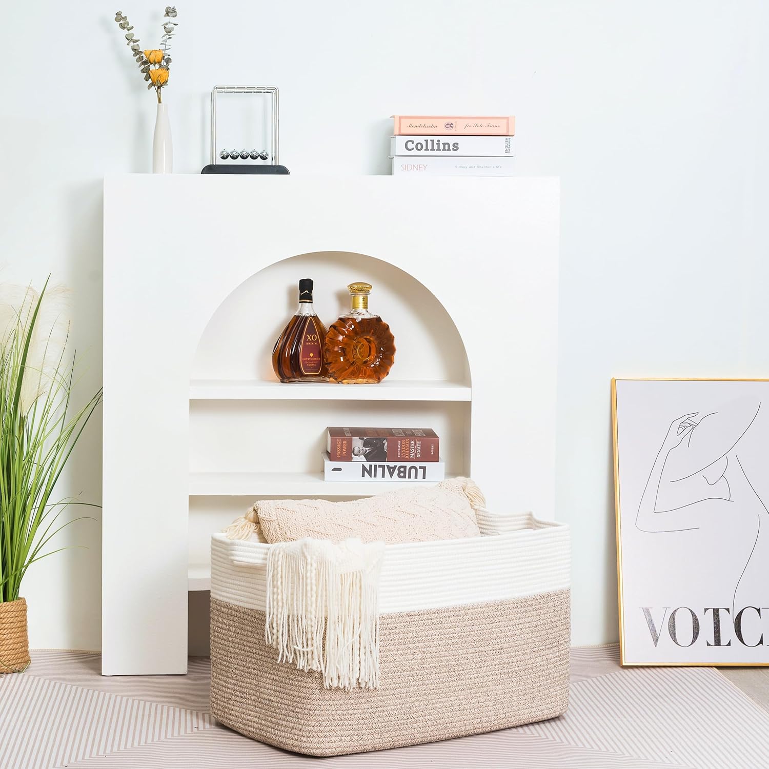 - Decorative Storage Baskets for Home Decor - A stylish, practical alternative to other boring storage solutions. Not only will our large storage baskets help you get organized, their sleek, sophisticated shape and neutral colors will complement any decor and any room: the bathroom, playroom, bedroom, living room, laundry room, mudroom, home office, entryway & more.