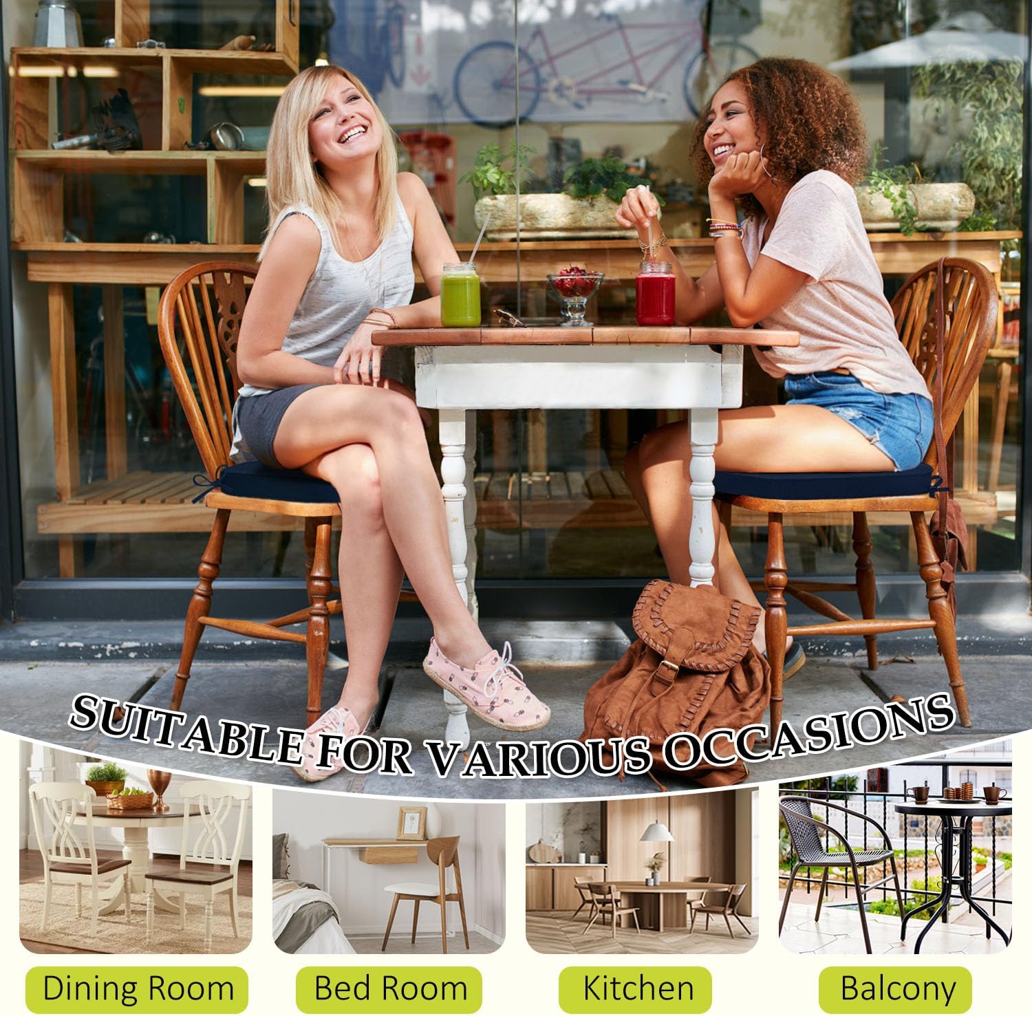 - Double Non-slip Design: Featuring 2 adjustable straps to secure the cushion to chair legs and a textured non-slip silicone base, these chair pads stay firmly in place on smooth surfaces. The dual anchoring system ensures stability, allowing you to sit comfortably without frequent readjustments