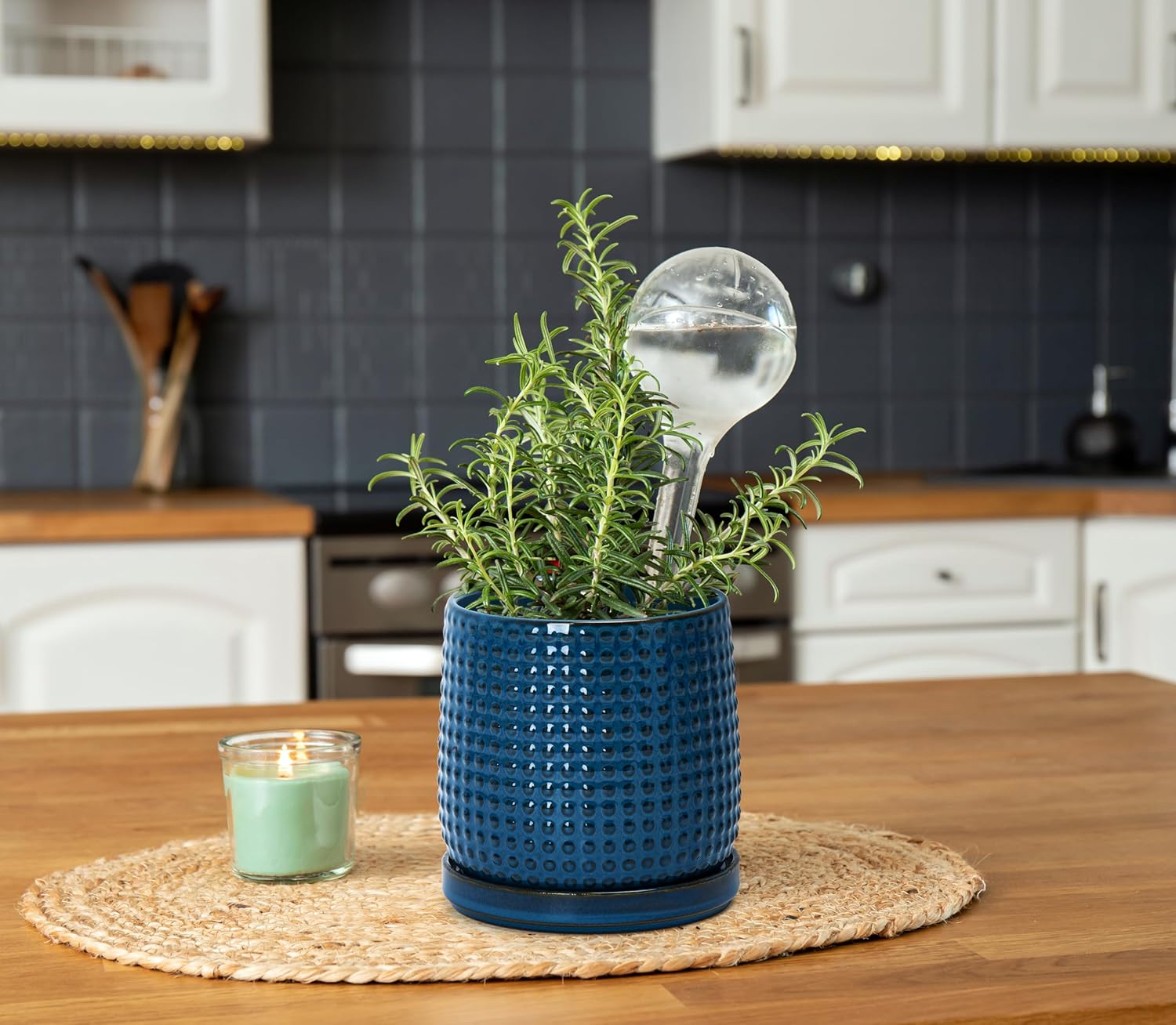 D'vine Dev 4 Inch Ceramic Beaded Stoneware Planter Pot - Flower Pot with Drainage Holes and Saucers for Indoor Succulent Plants or Flowers, Midnight Blue, 27-C-Z-3