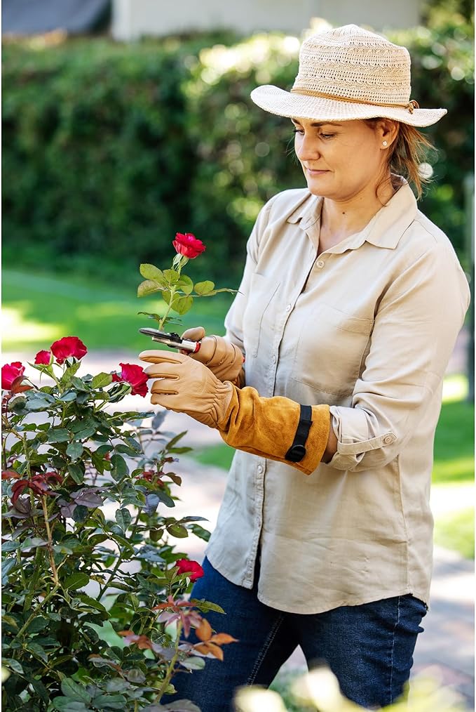 FELCO Model 705 Rose Gloves - Medium Premium Puncture Resistant Leather Gloves Suede Gantlet Cut Rose Pruning Cutting Snipping Horticultists Florists Gardeners Specialist Rose Cultivators