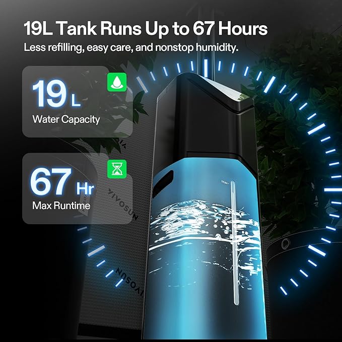 VIVOSUN AeroStream H19 Intelligent Environmental 19L Humidifier with Temp & Humidity Probe, Top Control Panel, Smart Remote Control, Designed Specifically for Use with Grow Tents