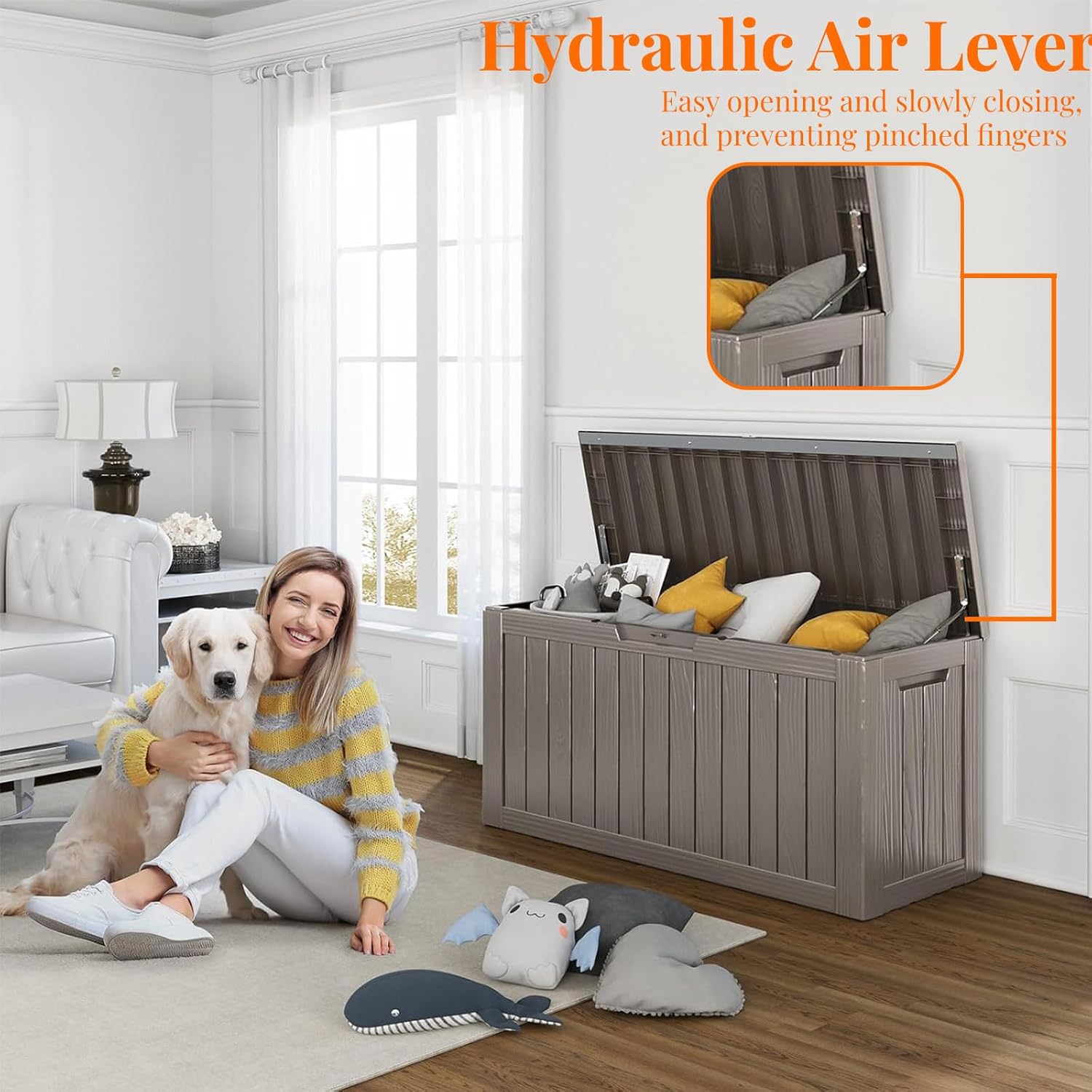 - CONVENIENT DESIGN: Our deck storage box features built-in handles on both sides for easy lifting and mobility. Additionally, you can enhance security by adding a password lock/small lock (not included) to the top cover