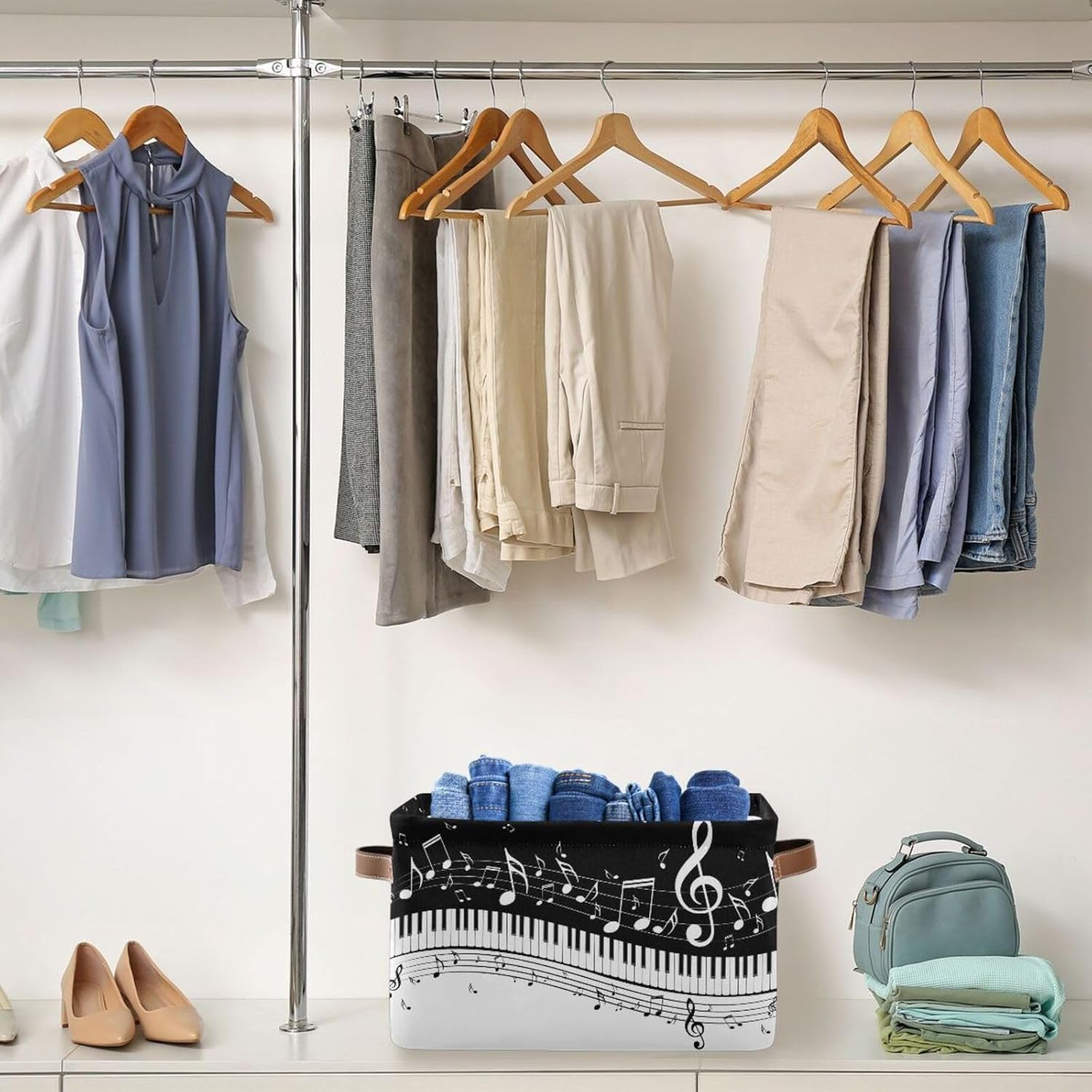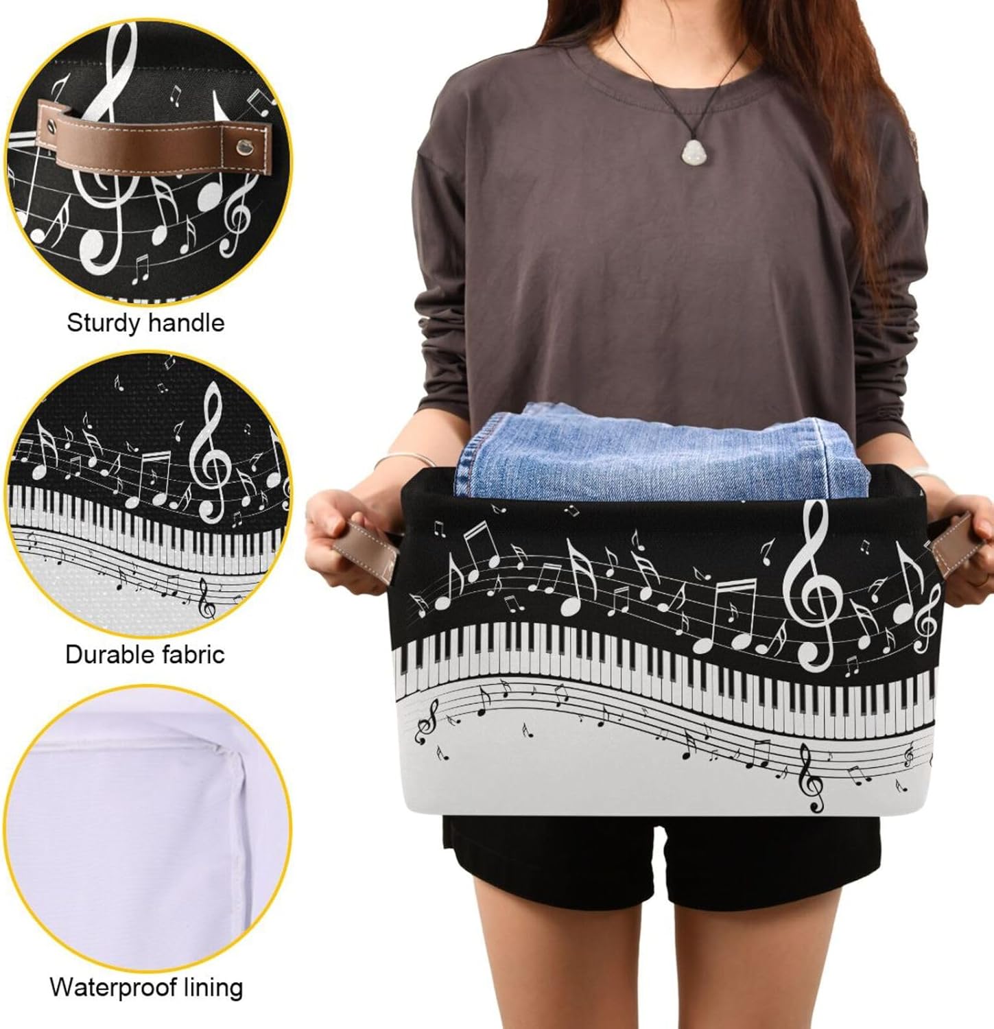 Black White Music Rectangular Storage Basket Organizer Bin Shelf Baskets For Clothes Gifts For Home Office Dorm