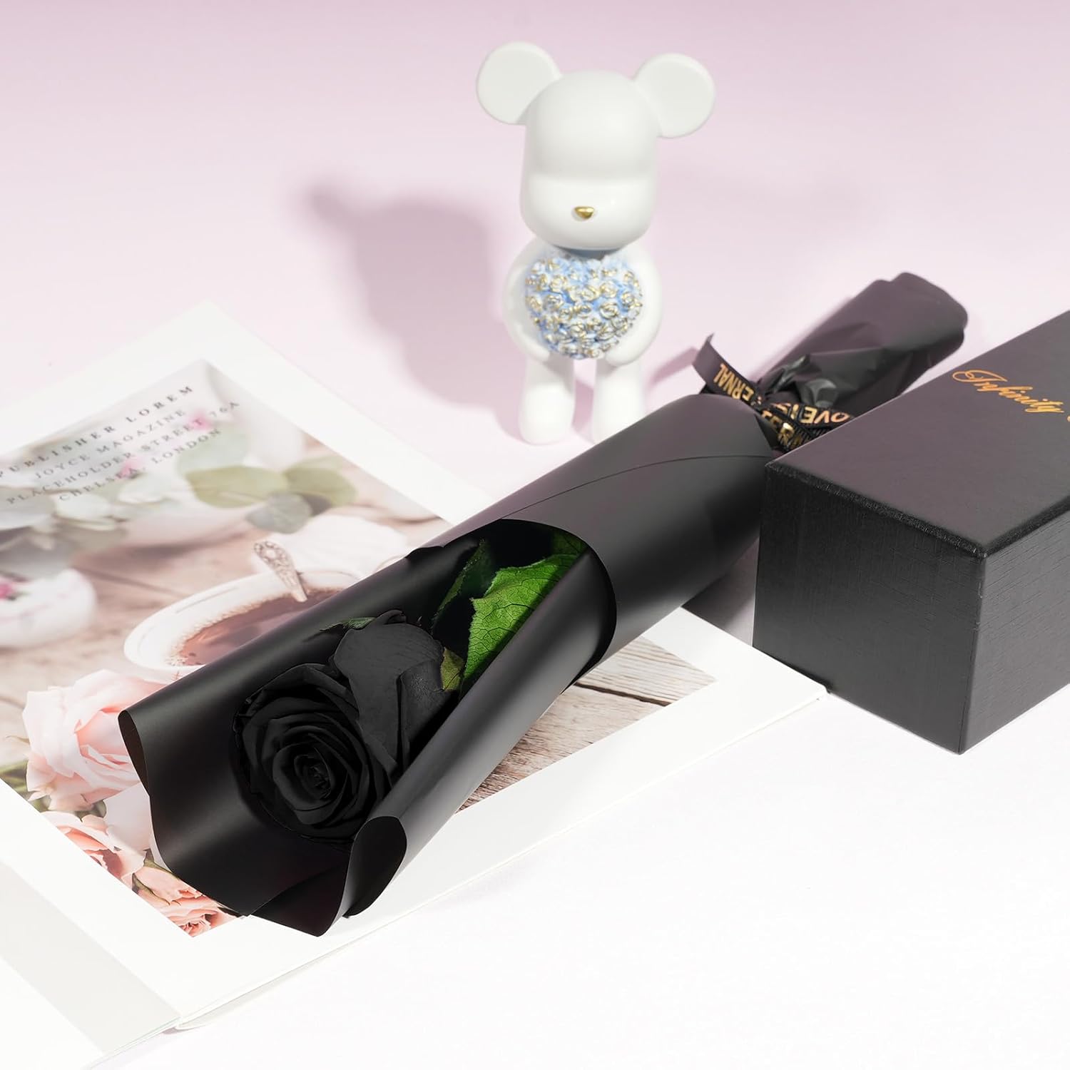 Yamonic Preserved Flowers Rose Gifts for Women Mom, Mothers Day Rose Gifts for Mom, Forever Real Flower Birthday Mom Gifts for Her, Women, Grandma,Girlfriend,Wife Gifts for Anniversary Wedding(Black)