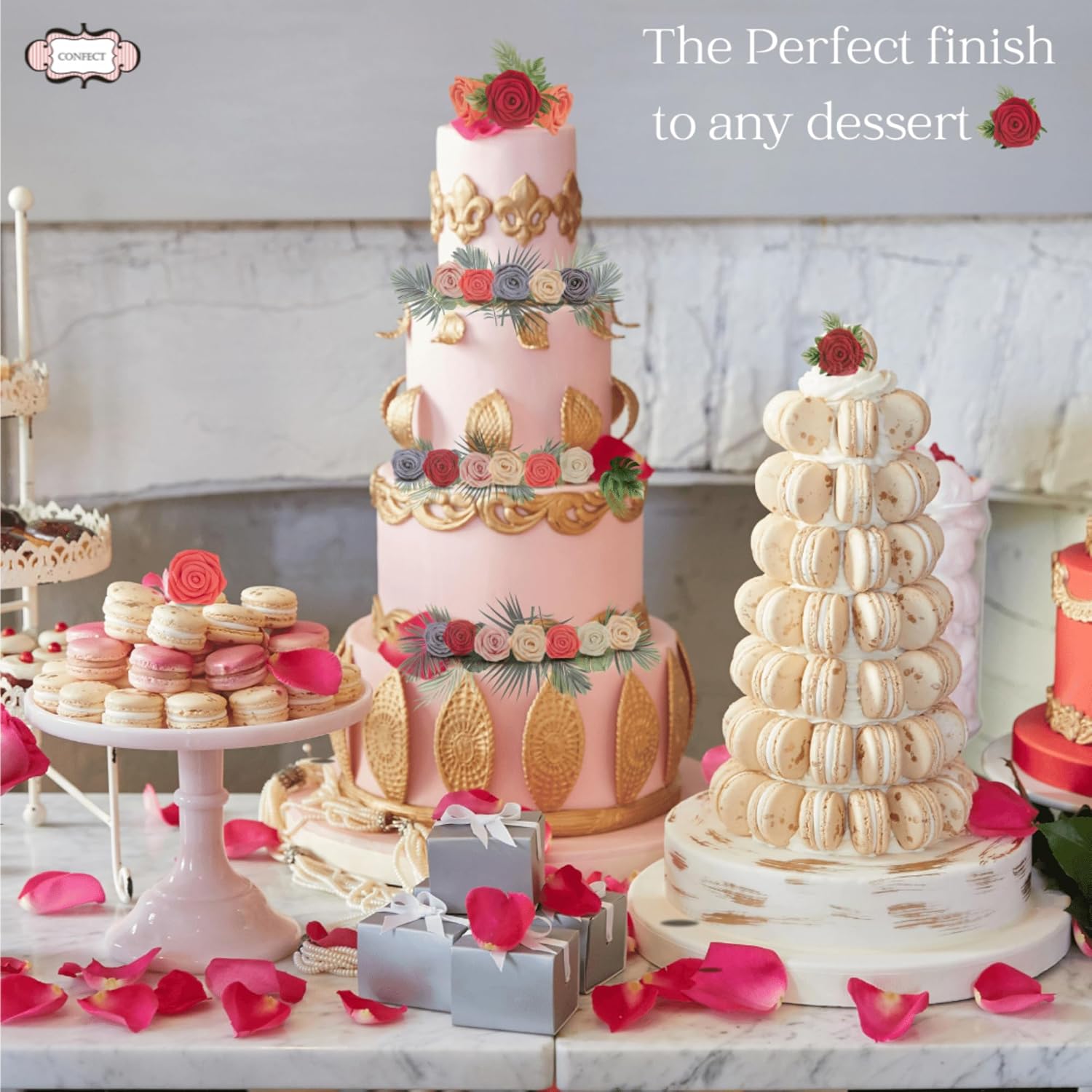 Confect Metallic Edible Rose Topper – Gold Roses for Cake, Cupcake & Doughnut Decoration – Pack of 12 Edible Floral Toppers- Vegan, Gluten-Free, Nut-Free, Soy-Free, Dairy-Free, Palm Oil-Free