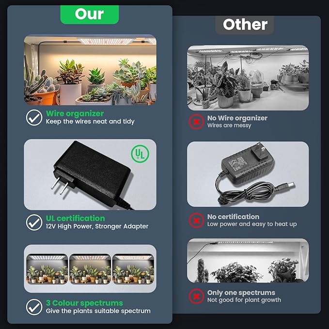 - [Good Helper for Seedling]: The product is perfect for seedling. full spectrum makes your seeds grow more stable. Adopting new UL certified 12V adapter, more stable current output and longer service life.