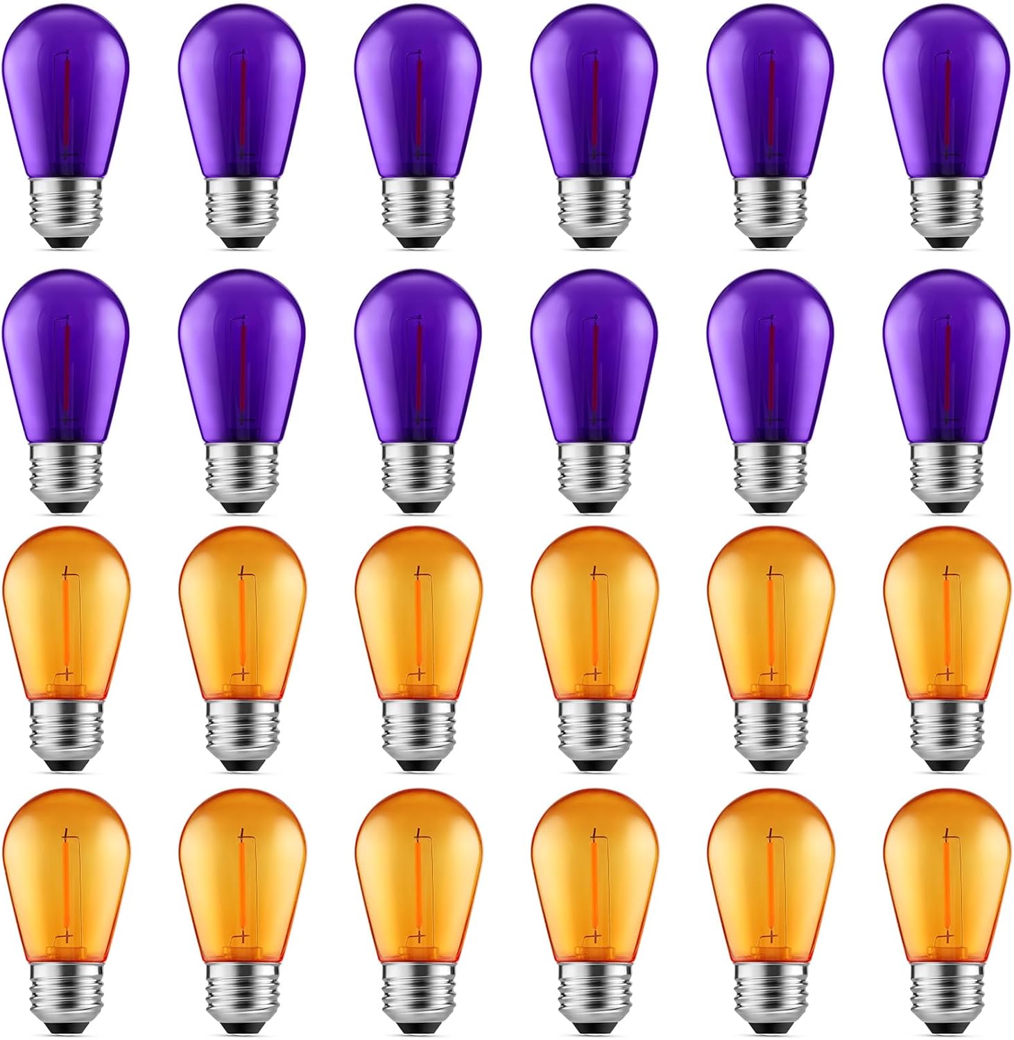Meconard S14 Purple and Orange LED Light Bulbs, 24Pack 1W Plastic Shatterproof Waterproof LED Bulbs for Indoor Outdoor String Lights, E26 Base, Halloween Decoration, String Light Replacement Bulbs