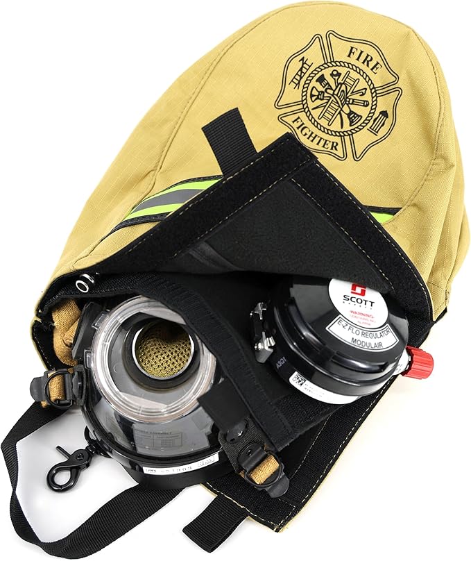 Lightning X Dual Compartment Fireman's SCBA Air Pak Respirator Firefighter Mask Face Piece Bag for First Responder | Turnout Tan