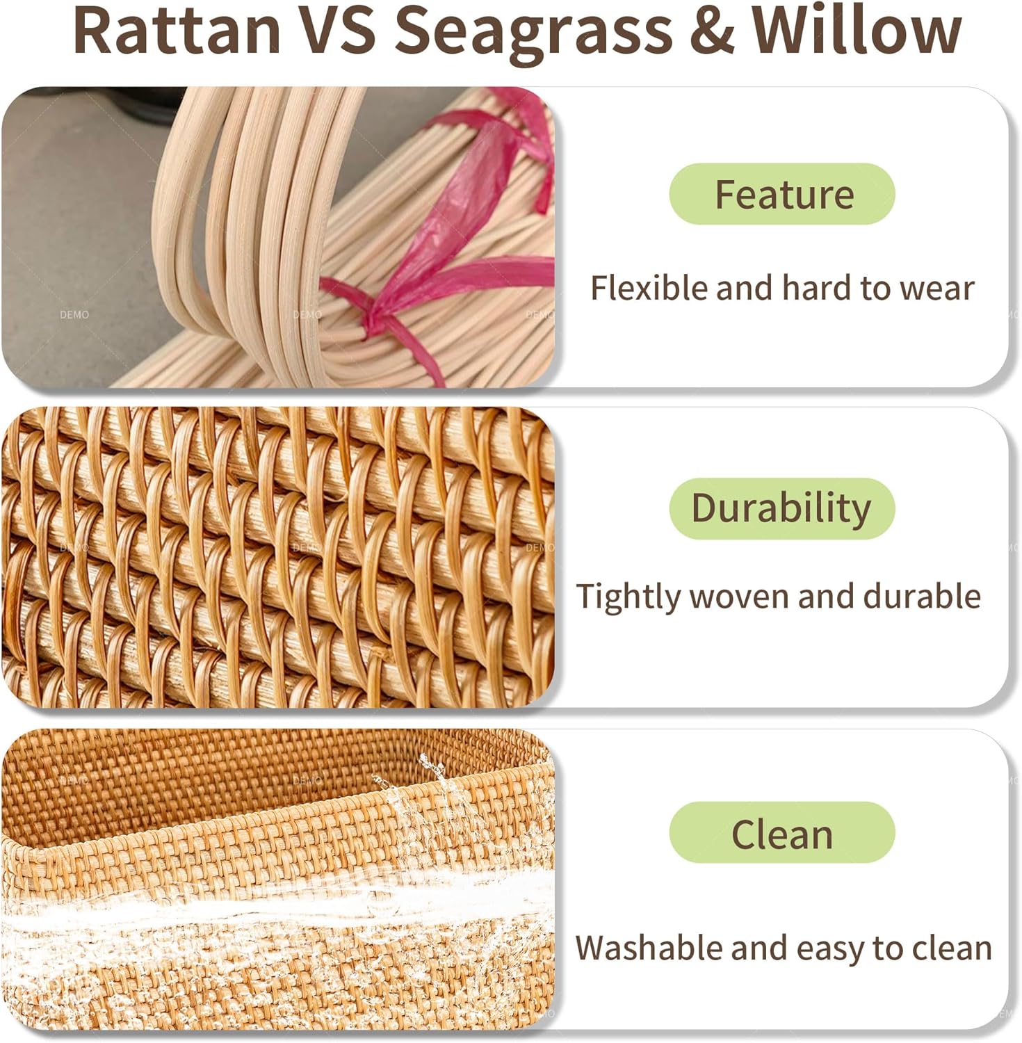 - 〖HANDCRAFTED PRODUCTION〗The rattan basket is handcrfted by vietnamese craftsmen. Due to it is handmade, there will be slight errors in size. If there is deformation during use, please wet the rattan with water and use heavy objects to shape and restore.