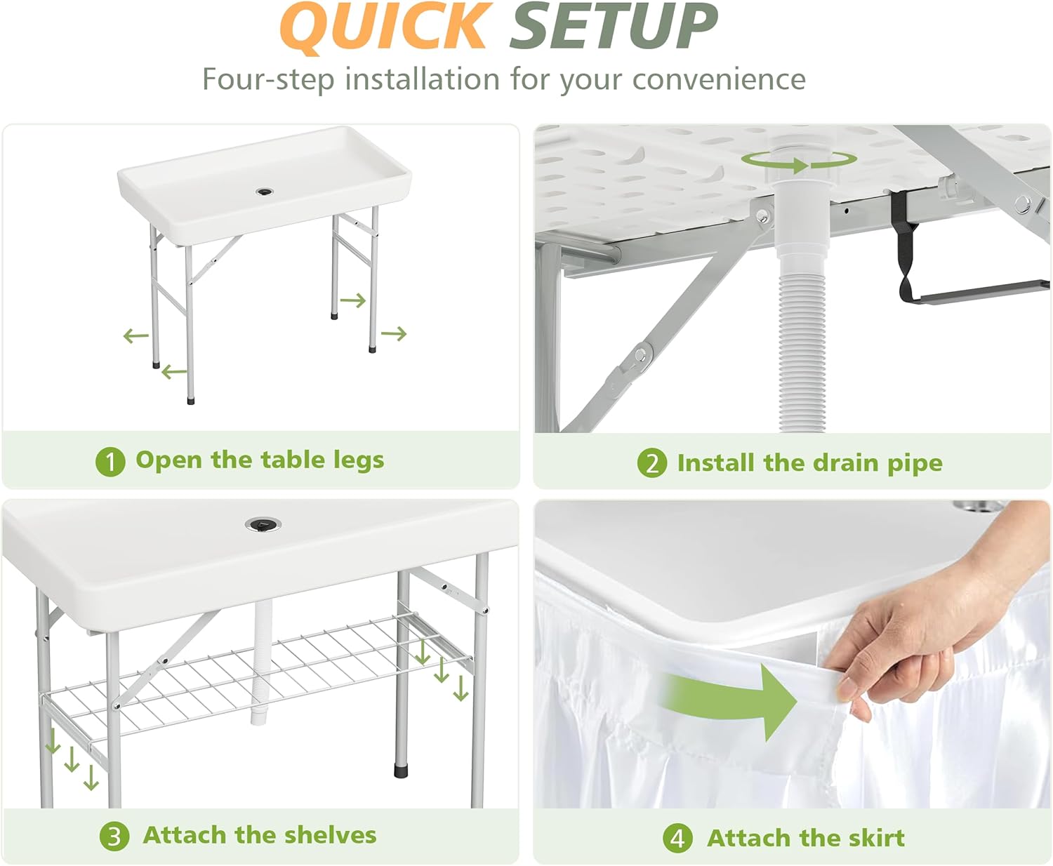 - Portable Folding Table: The 4 legs of this ice table with drain can be folded under the tabletop, which makes it easy for you to transport and convenient to store it, greatly helping you to save your storage space.
