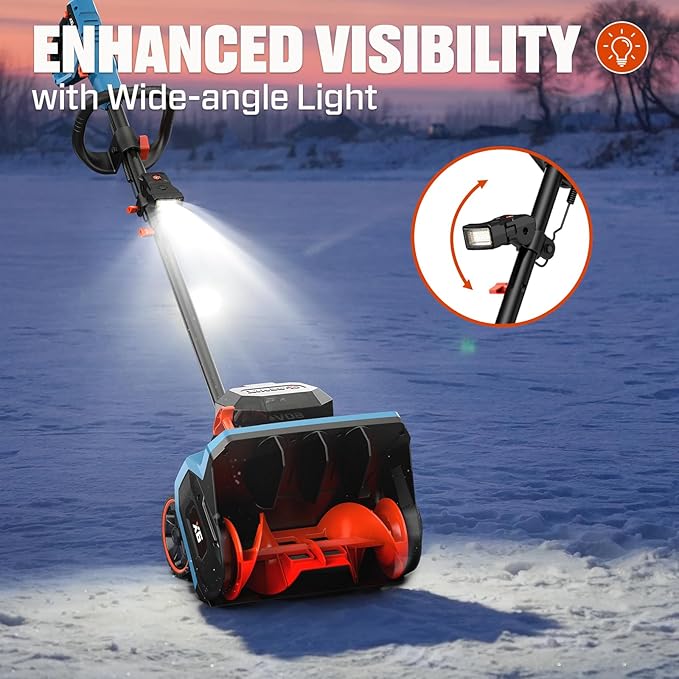 - ๐๐ฅ๐ฅ-๐๐จ๐ง๐๐ข๐ญ๐ข๐จ๐ง ๐๐ข๐ฌ๐ข๐๐ข๐ฅ๐ข๐ญ๐ฒ & ๐๐ฎ๐ข๐๐ญ ๐๐ฉ๐๐ซ๐๐ญ๐ข๐จ๐ง: The LED light bar of cordless snow remover ensures safe, effective operation day or night. Experience whisper-quiet, near-silent clearing (efficiently clears 15"W x 6"D paths) without disturbing your neighborhood.