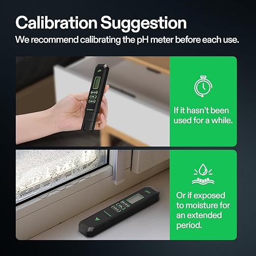 - Hassle-Free Auto-Calibration: One-touch automatic calibration supports one-point, two-point, or three-point calibration; Just use the provided buffer powder packs to make solutions, press the “CAL” button for 3 seconds, and the meter self-calibrates