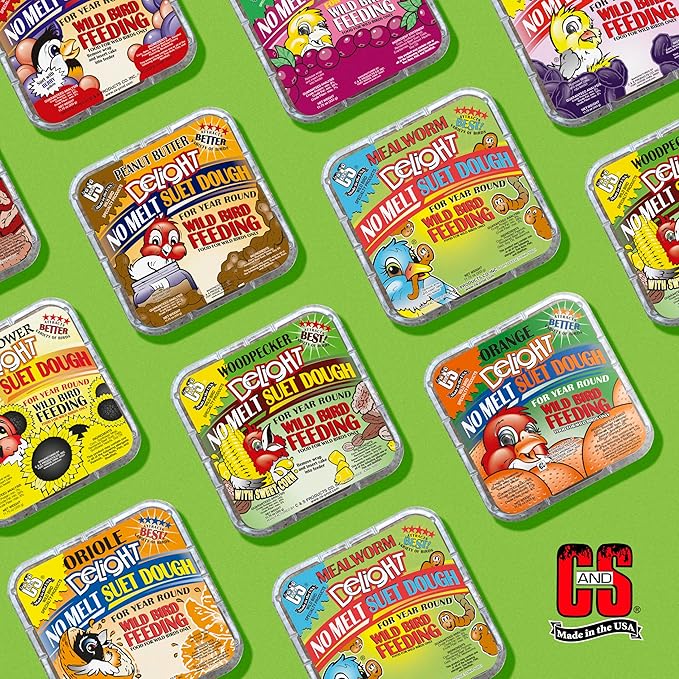 - ECONOMICAL & EASY TO USE compared to traditional seeds. C&S Mealworm Delight No Melt Suet Dough combined with a wire feeder offers a great value for today’s wild bird feeding customer