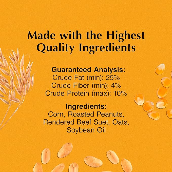 - MADE WITH ROASTED PEANUTS, this no melt suet delivers a concentrated energy boost wild birds need to forage, nest, migrate and more