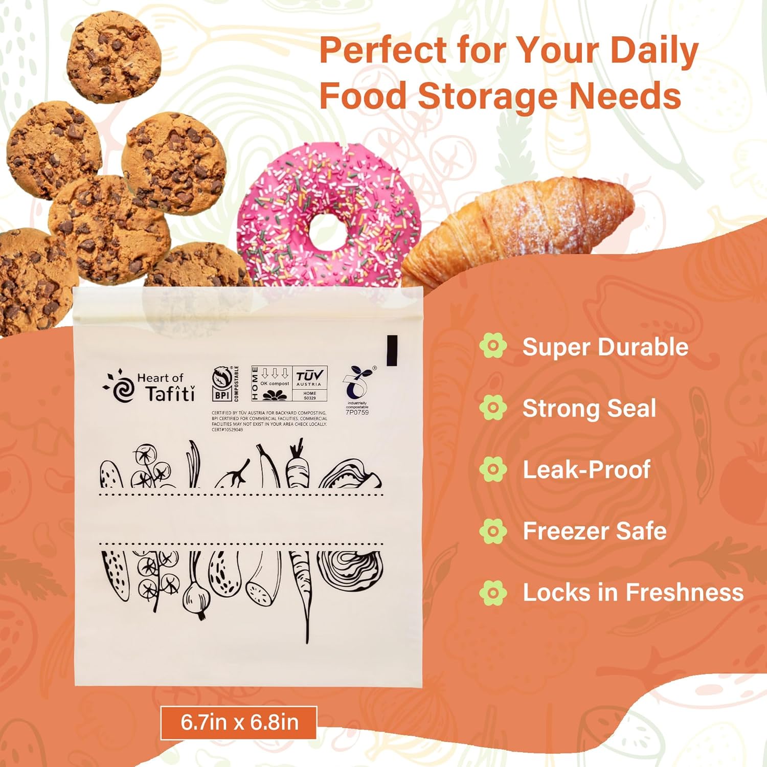 - 💕【Certified Compostable in U.S. & Europe】Heart of Tafiti resealable food storage bags are certified compostable, meeting the highest-rated standards, including ASTM D6400, European EN 13432, and BPI certification, ensuring they decompose in industrial composting facilities.