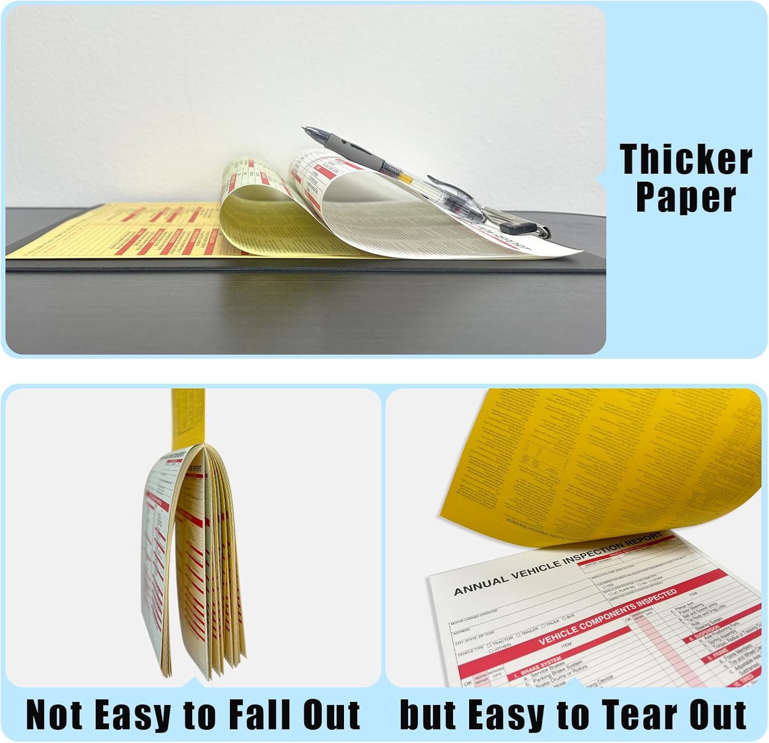 - Comprehensive & Convenient: The annual vehicle inspection reports include all the necessary categories for safety and compliance. Structured for clarity and ease of completion . Measuring 8.5" x 11.75" ,they are come in a snap-out, 3-ply carbonless format (original, duplicate, vehicle copy), making them easy to use and manage.