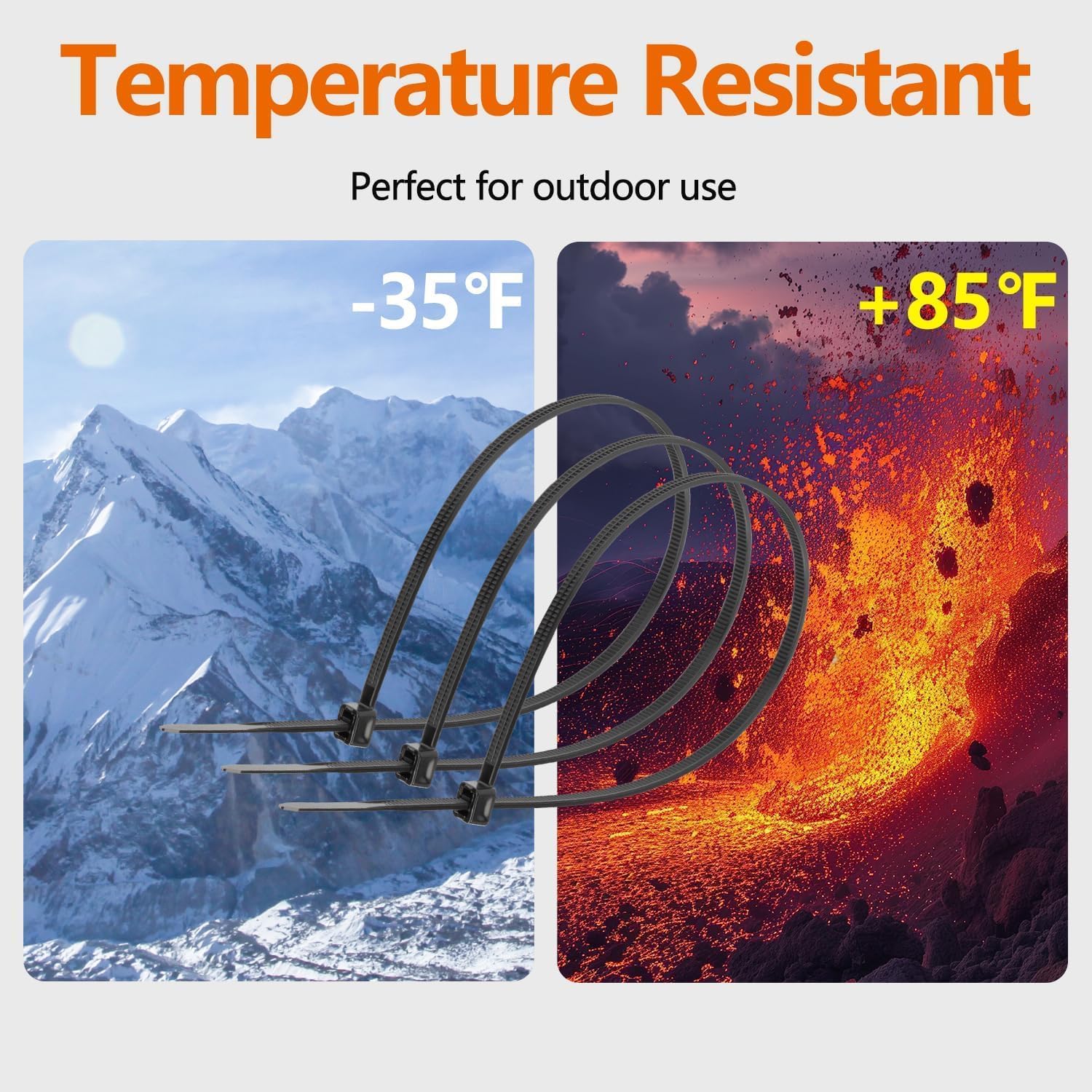 12 Inch Black Zip Ties (1200 Pack), 2025 New Patented Design,110 LBS Tensile Strength, Self-Locking Nylon PA66 UV Resistant Cable Ties for Indoor and Outdoor Use