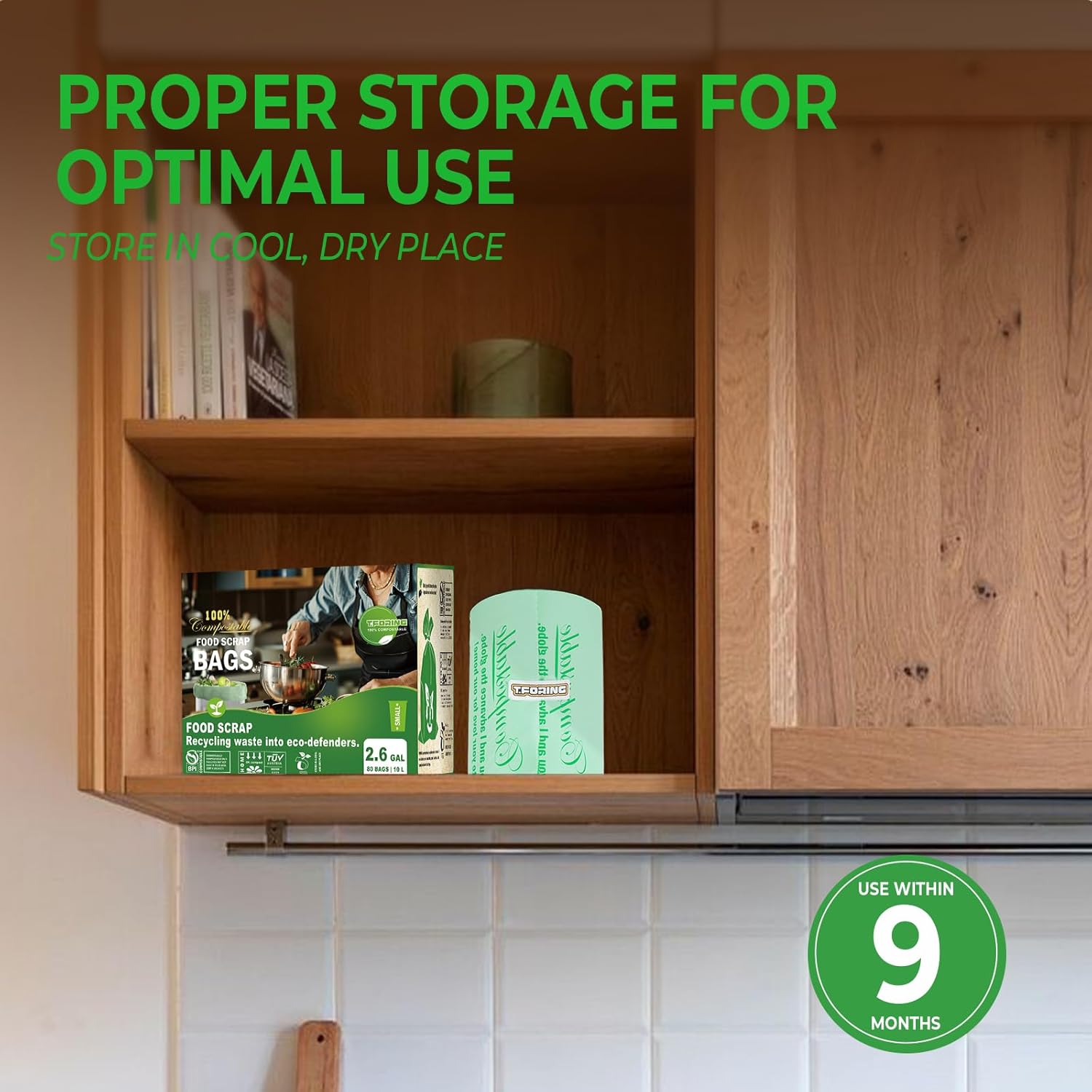 - 【2.6 Gallon Compost Bags】Just the right size to perfectly fit most small trash cans. The 2.6 gallon trash bags are 16.3” W x 16.5''H,0.8 Mil Thick,suitable for 9-12L Countertop Bin. 80 Bags Per Roll.