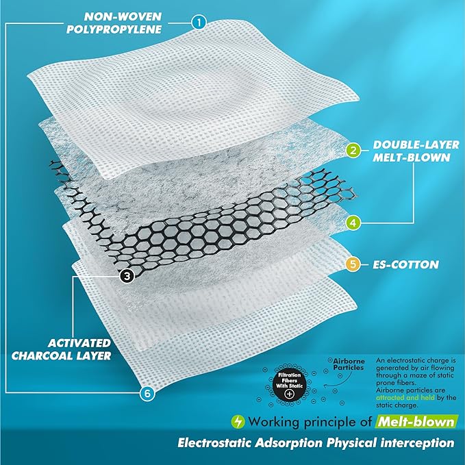 - 【99.6% Filtration】BASE CAMP mask for dust adopts 6-layer filter with EAPI filtration technology and advanced nanotechnology to block 99.6% dust, odors, pollutants, and other airborne particles. Got it to cut down exposure to dust particles in the industrial workplace. (Note: The filter already attached is just an example; please replace it with a new filter when using your dust mask)