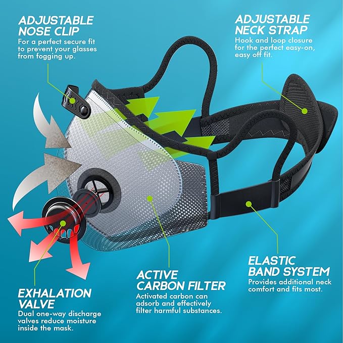 - 【Adjustable & Universal Fit】This face mask features a Velcro and elastic strap system, making it easily extend or shorten the neck band to fit the neck comfortably for a wide range of users. Ideal safety work mask for construction, woodworking, sanding, mowing, sawing, metal working, even works great for spray paint fumes