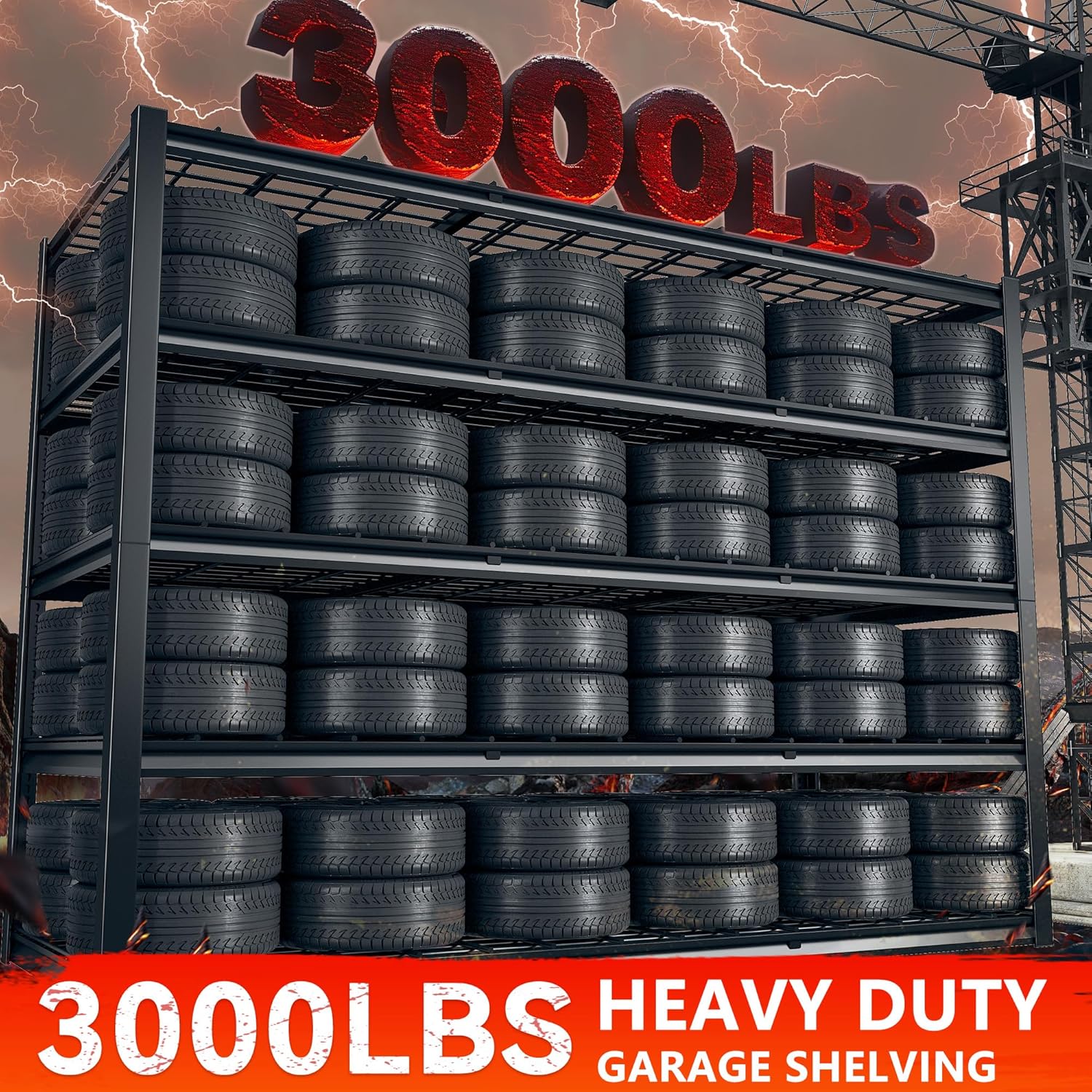 - 【3000LBS Heavy Duty Garage Shelving】REIBII's metal shelving has thickened double metal legs. Each solid thickened metal shelving with 9 big ribs beneath can hold up to 600 lbs, with a total bearing capacity of 3000 lbs, which makes industrial garage shelves more stable and more stuff can be stored