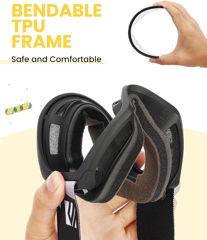 - Soft and Safety TPU Frame: SNOWER kids snowboard goggles feature a premium comfort TPU frame. Whether your kids are skiing or having snowball fights, the soft frame offers extra protection in case of fall and the quality is durable