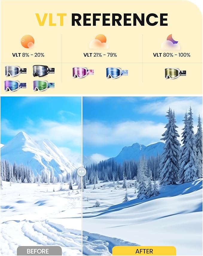 - Crystal Clear Vision: With special HD ski goggles, you will see everything clear and bright on the slopes! Kids snow goggles help cut down on glare and make sight looks sharp, so your eyes will not get tired. UV400 protects your eyes from the sun and keeps you safe while you have fun