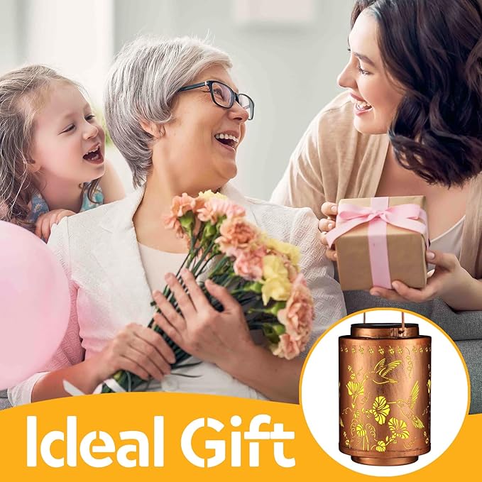Solar Lanterns Outdoor Waterproof Garden Decor Gifts for Women Mon Grandma Metal Hanging Solar Lights Decoration for Outside LED Lanterns for Yard Patio Lawn Pathway(Hummingbirds)