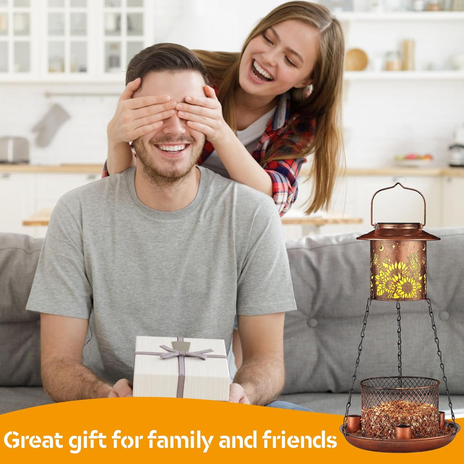 Butterfly Solar Bird Feeder for Outdoor Hanging Gifts for Women Mom Sunflower Metal Wild Birdfeeder Garden Lantern Decor Lanterns Outside for Yard Patio Lawn Pathway Landscape