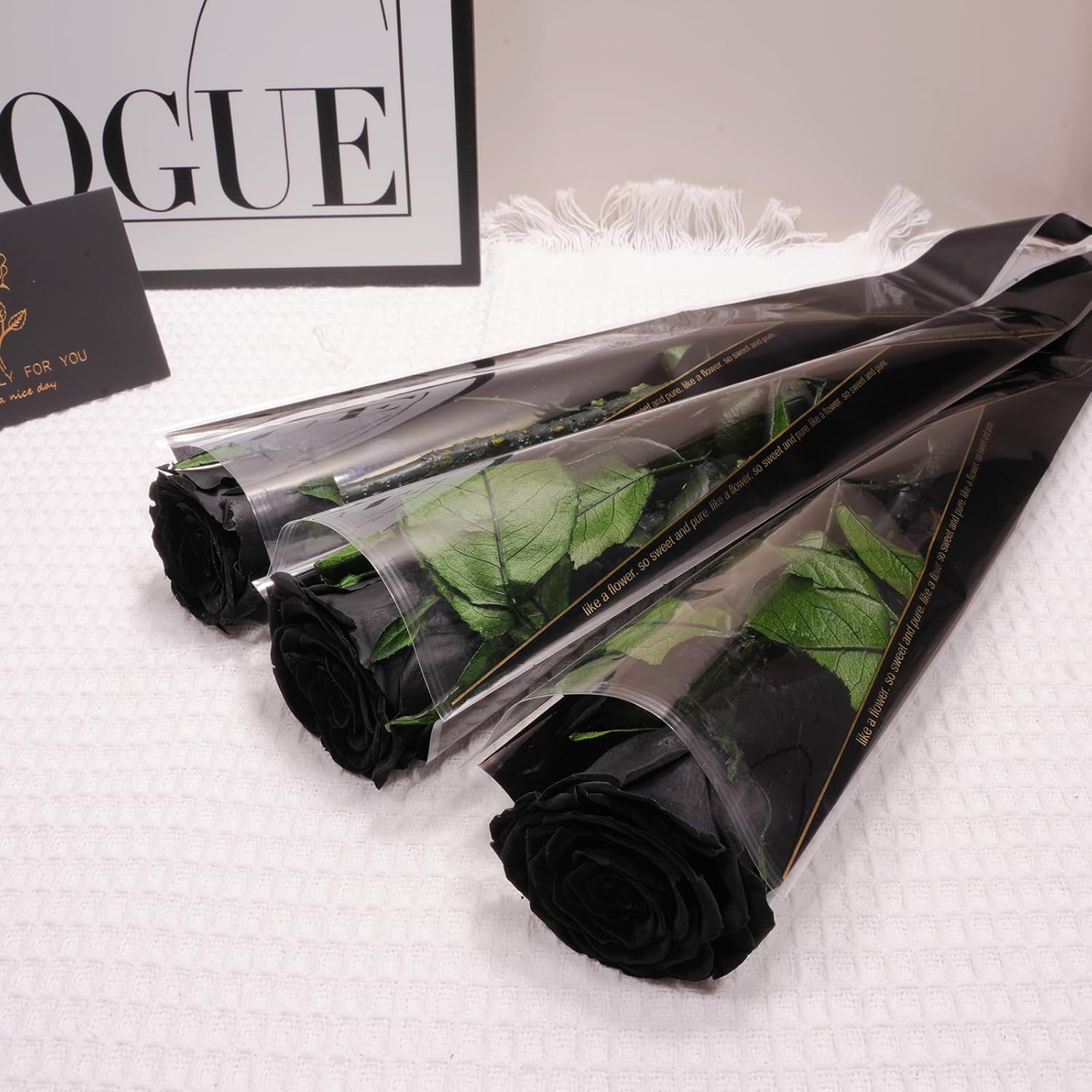 - Eternal Real Rose with Stems: Package includes- 3 x Preserved flowers roses, 3 x Flower wrapping bags, 1 x Greetings Cards,1 x Rose gift box. The preserved flowers rose with long stems are 30 to 32 cm(11.81 to 12.6 in) length, the roses have a diameter of 5 to 6 cm(1.97 to 2.36 in) and some of their thorns have been removed to avoid injury. Preserved flowers roses for delivery prime