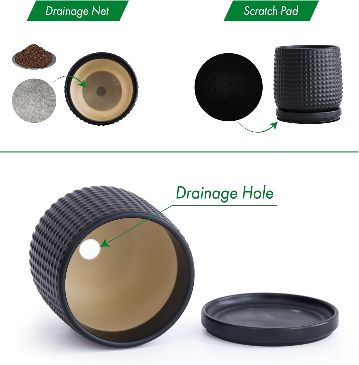 - Included: Each pot comes with drainage hole and fitting detachable drip tray.