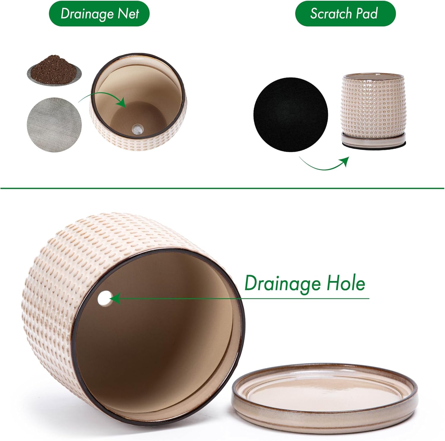 - Included: Each pot comes with drainage hole and fitting detachable drip tray.