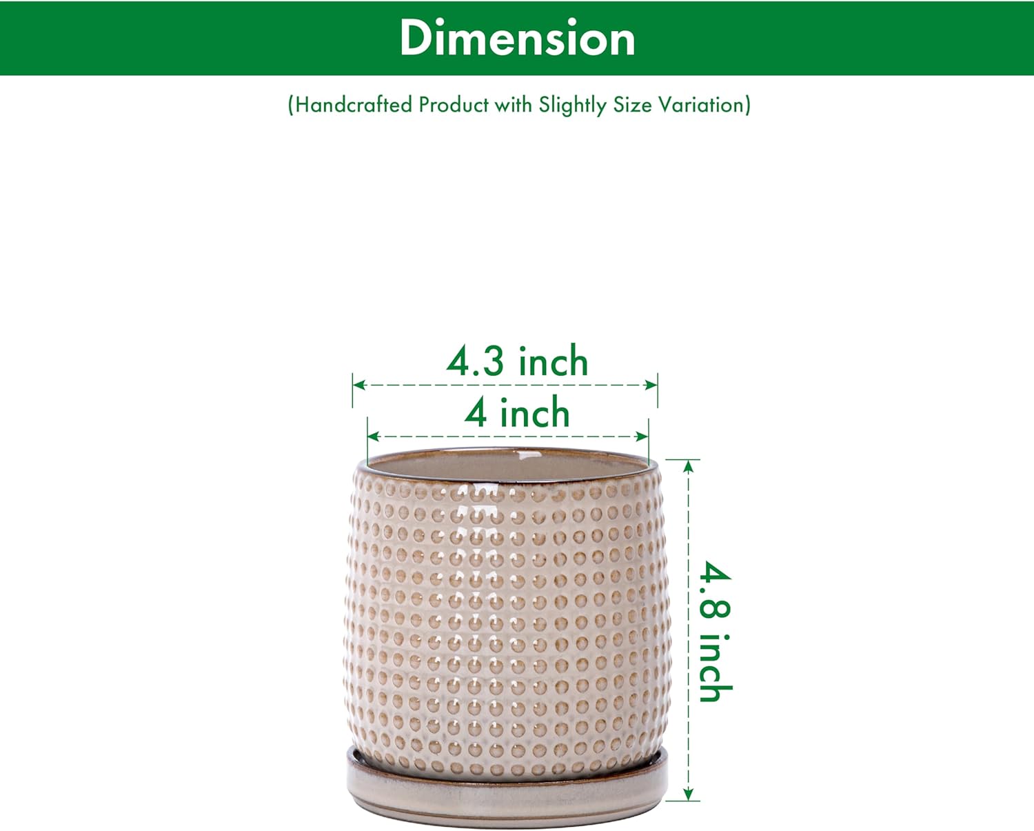 - Size & Dimension: 4.3" in outside diameter (OD), 4" in inside diameter (ID), 4.8" in height (H).