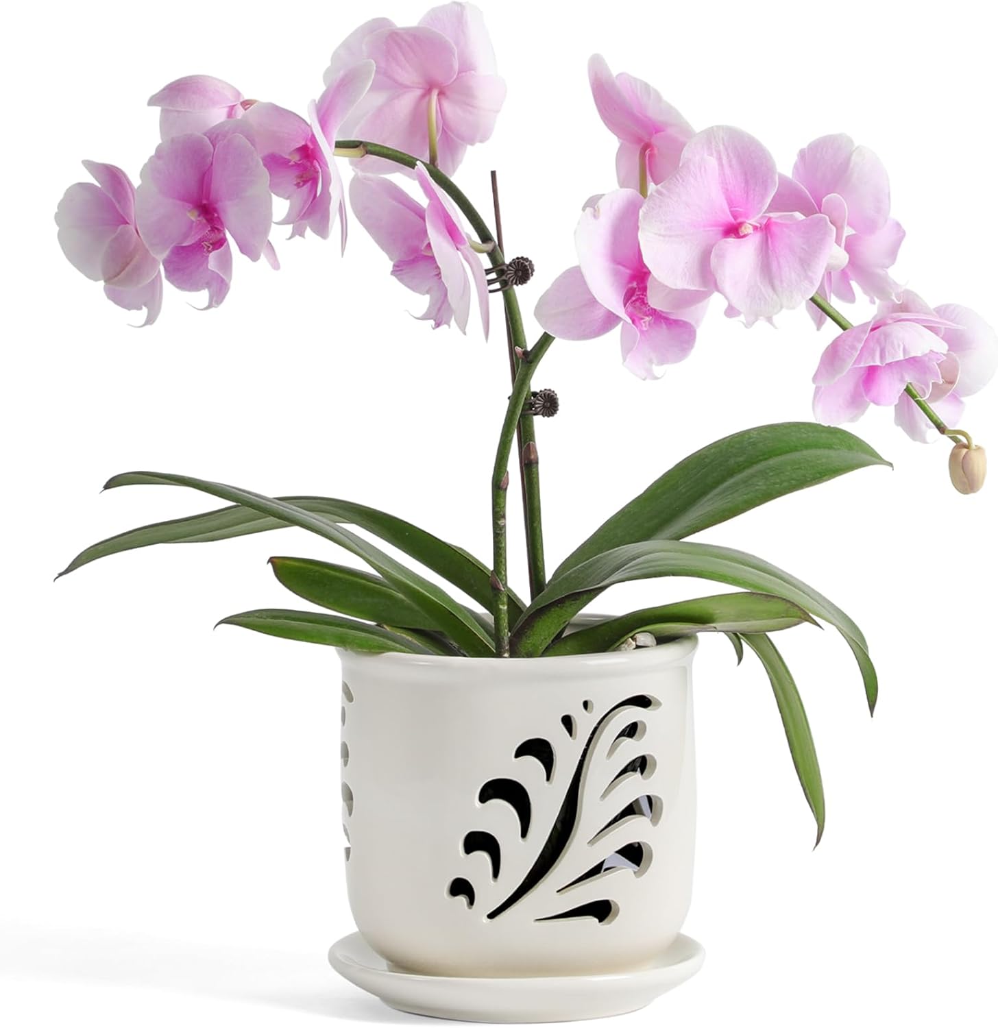 - Suitable for Various Orchids - Ceramic pots for plants measure 6.3" in diameter, 6.0" in height, and the top opening is 5.7” wide. Perfect for different orchids growing, such as Dendrobium, Phalaenopsis, Cymbidium and Cattleya