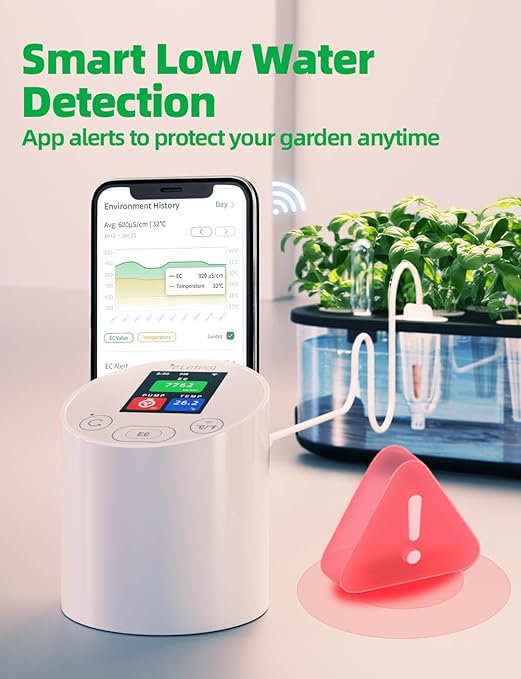 - Water Shortage Detection & Smart Garden Alerts: In addition to EC and temperature monitoring, the LetPot EC Monitor also includes a water shortage detection feature. The probe can detect if your tank is running low on water and send notifications through the app, ensuring your indoor garden never runs dry. This feature turns your hydroponic setup into a smarter, worry-free system.