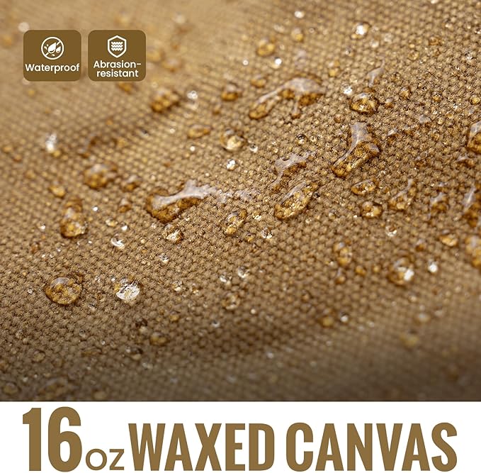 - Waterproof and Abrasion-resistant: OneTigris waxed canvas tool bag is meticulously crafted from sturdy and luxurious 16oz waxed canvas, ensuring exceptional durability. The waxed canvas is waterproof and abrasion-resistant , effectively protecting your belongings from harsh weather while adapting to various outdoor conditions. The bottom is designed with copper rivets, enhancing practicality and creating a classic, vintage style