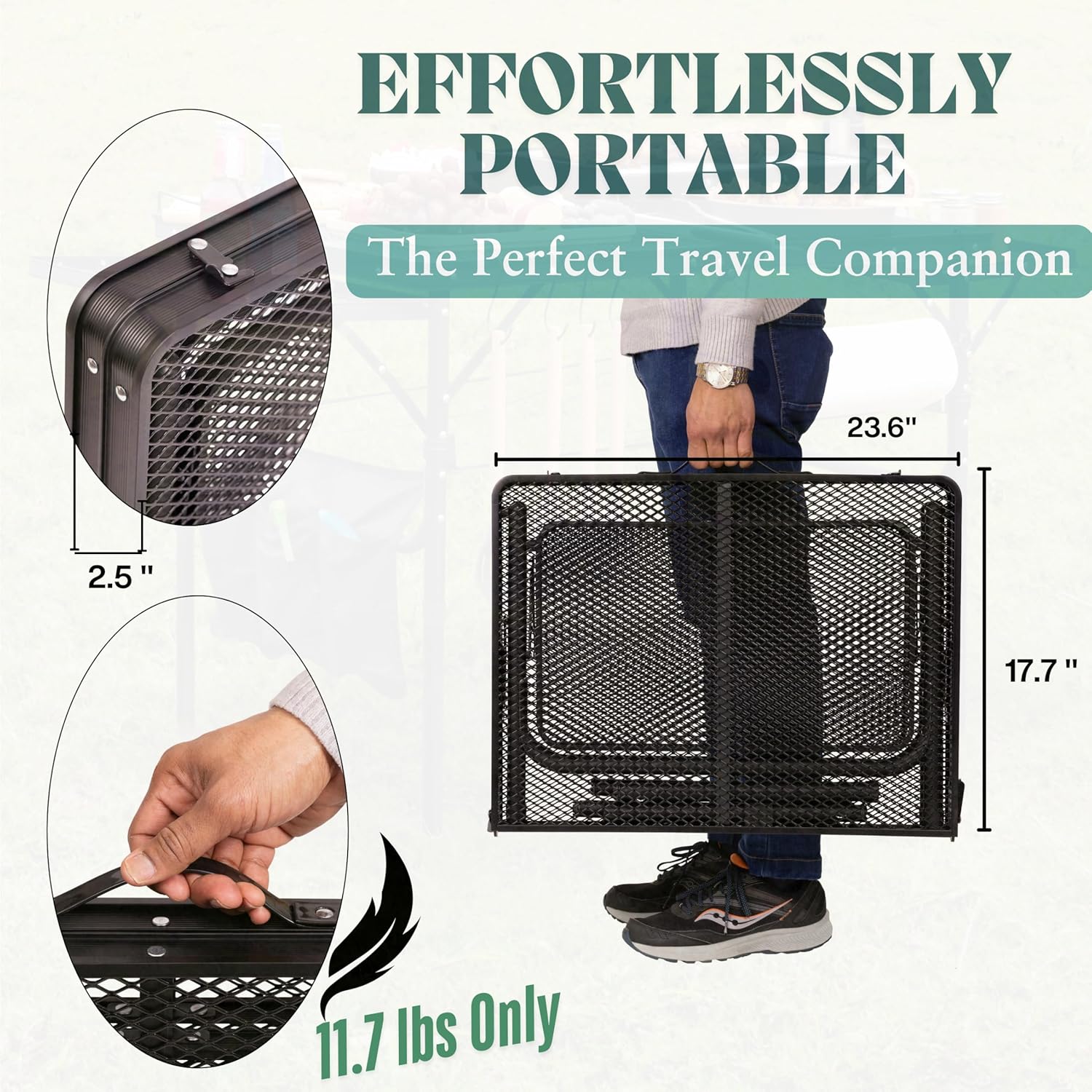 - ✅ Weather-Resistant: This metal portable camp table features a heat resistant and water- resistant surface. This small folding table portable design endures the elements. Its durable construction with exclusive coating guarantees long-lasting use as an outdoor dining table.
