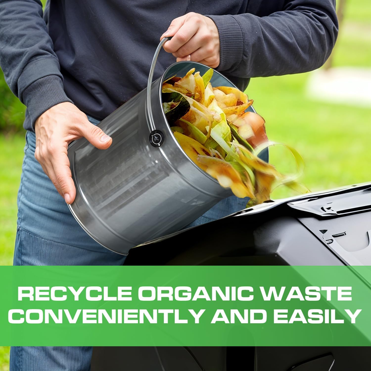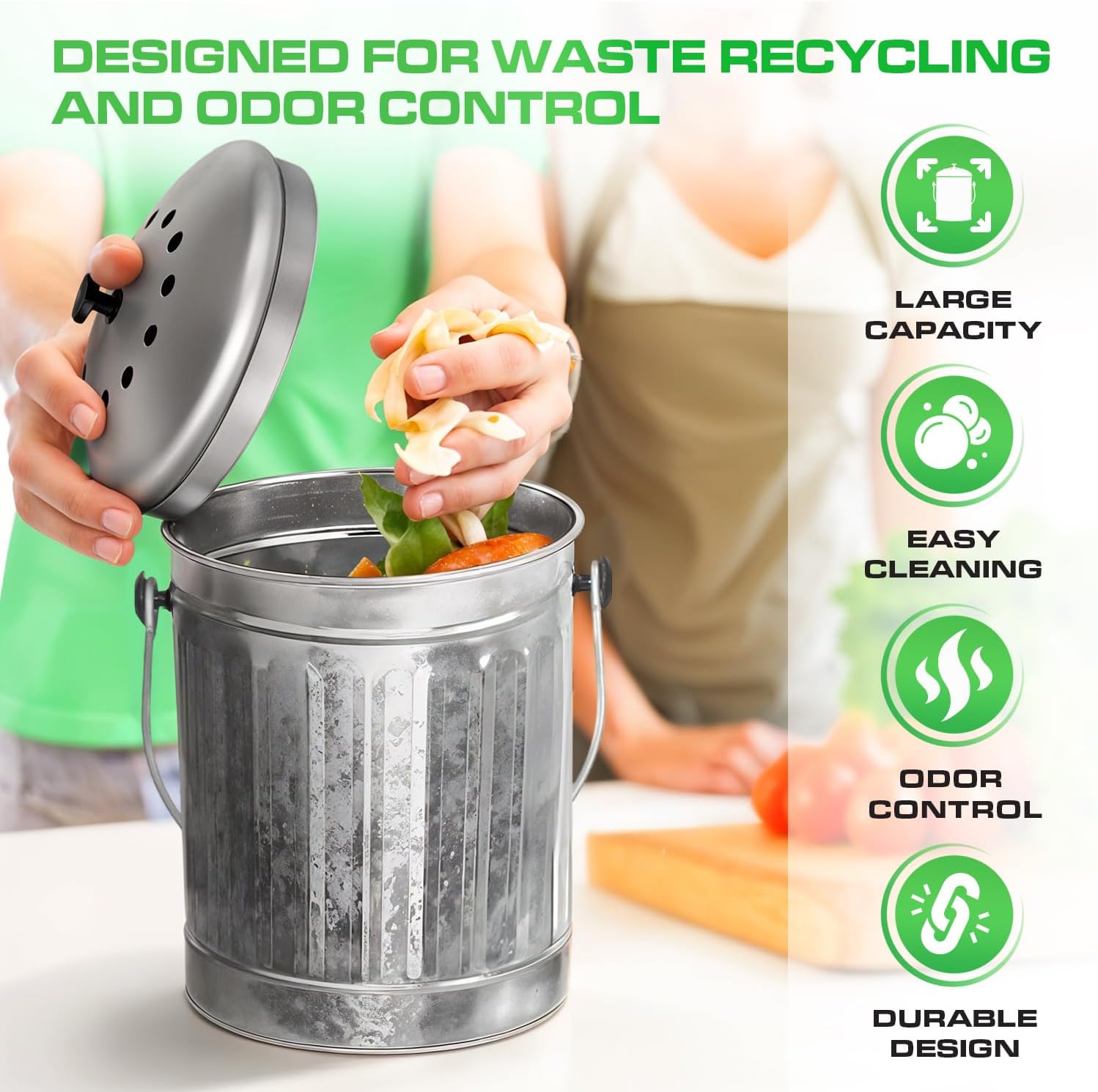 - High Quality Compost Bin Kitchen Counter: This countertop compost bin made of durable steel. Our indoor compost bin, food waste bin for kitchen is sturdy construction, ensures longevity, resists rust, and is easy to clean. Easy to carry with a sturdy handle.